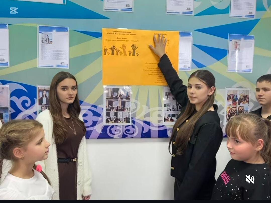 12 қарашада мектептің өзін-өзі басқару көшбасшылары “ДОСБОЛLIKE” республикалық акциясына қатысты: қол ұшын бер”. Акцияның ұраны: “Сіз нағыз дос болғыңыз келсе -өзіңіз оған айналыңыз!”. Мақсаты: шығармашылық ұжымдық негізінде мектеп ортасында жағымды қарым-қатынасты қалыптастыру үшін жағдай жасау. “Еріктілер” бағыты. Оқушылар өз мүдделерін жүзеге асыруда “Мен қалаймын - жасай аламын”формуласы бойынша бірікті.
