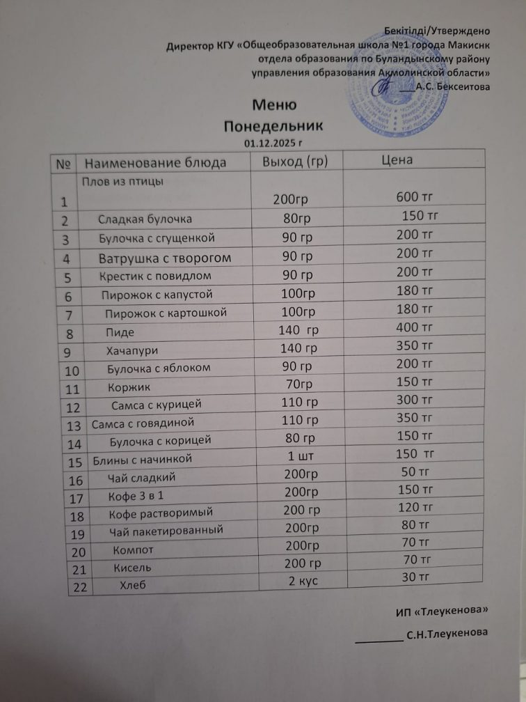 Ас мәзірі 01.12.2025