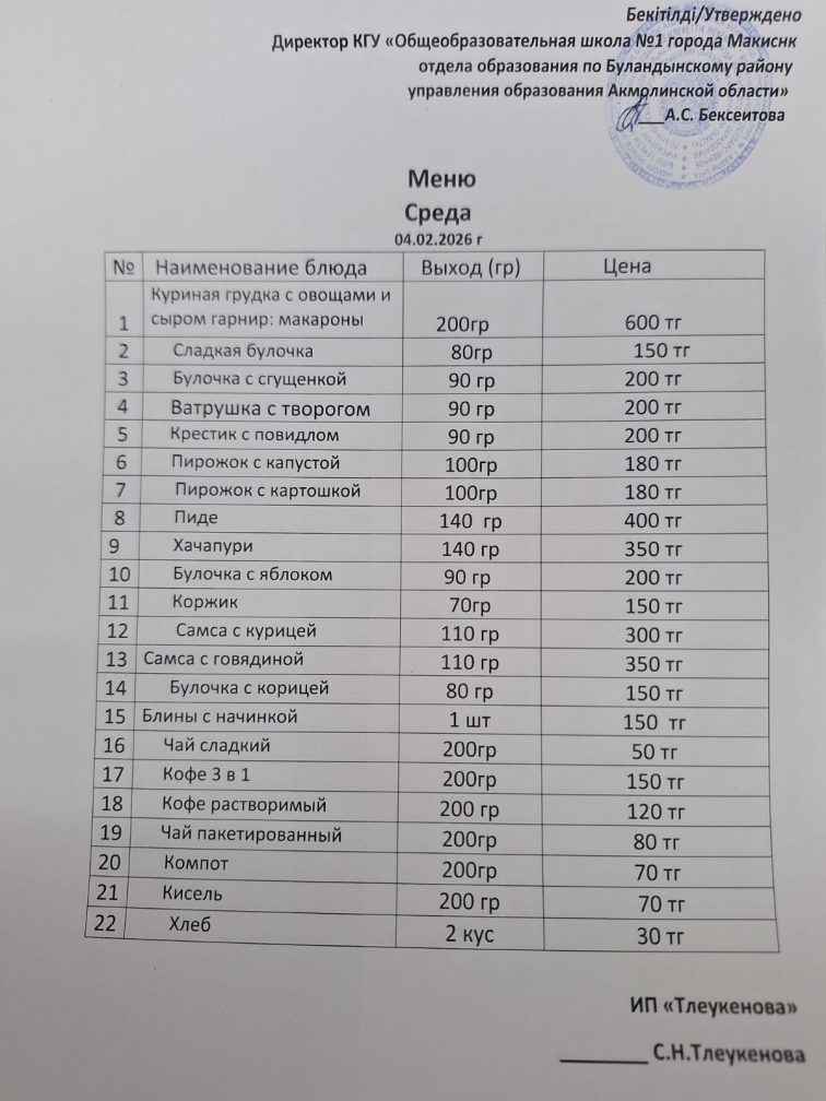 Ас мәзірі 04.02.2026