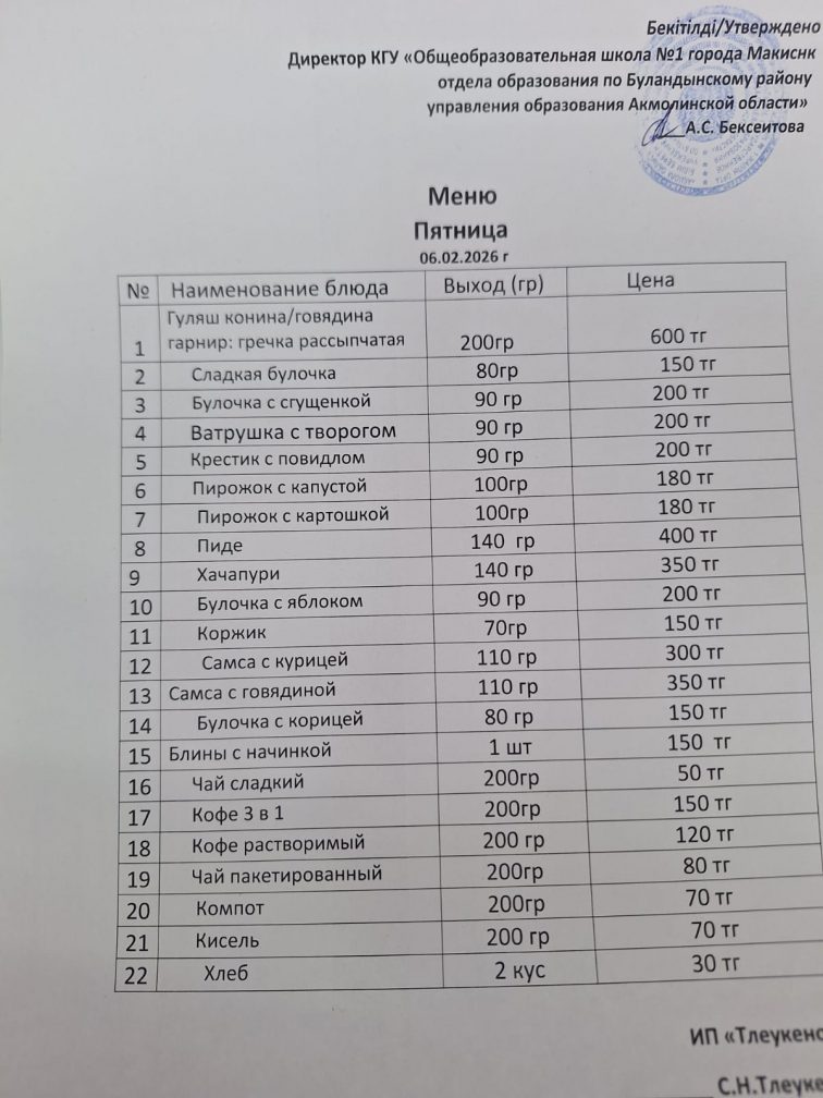 Ас мәзірі 06.02.2026