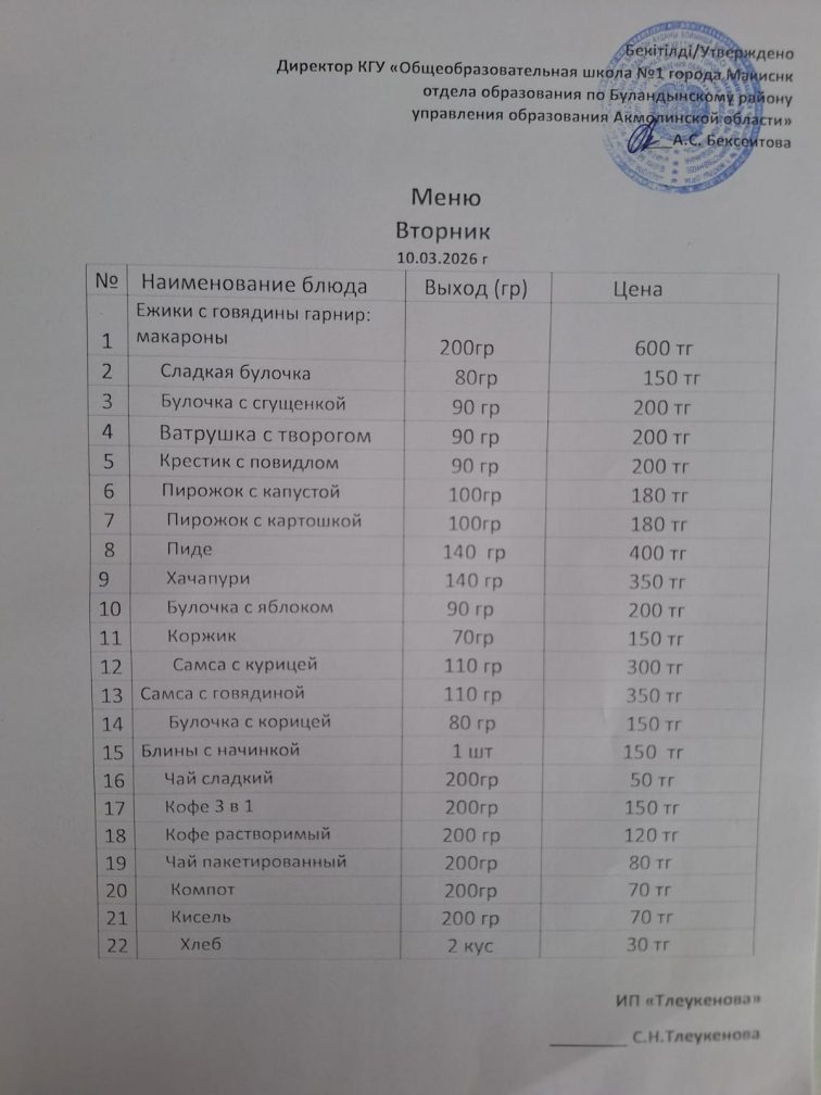 Ас мәзірі 10.03.2026