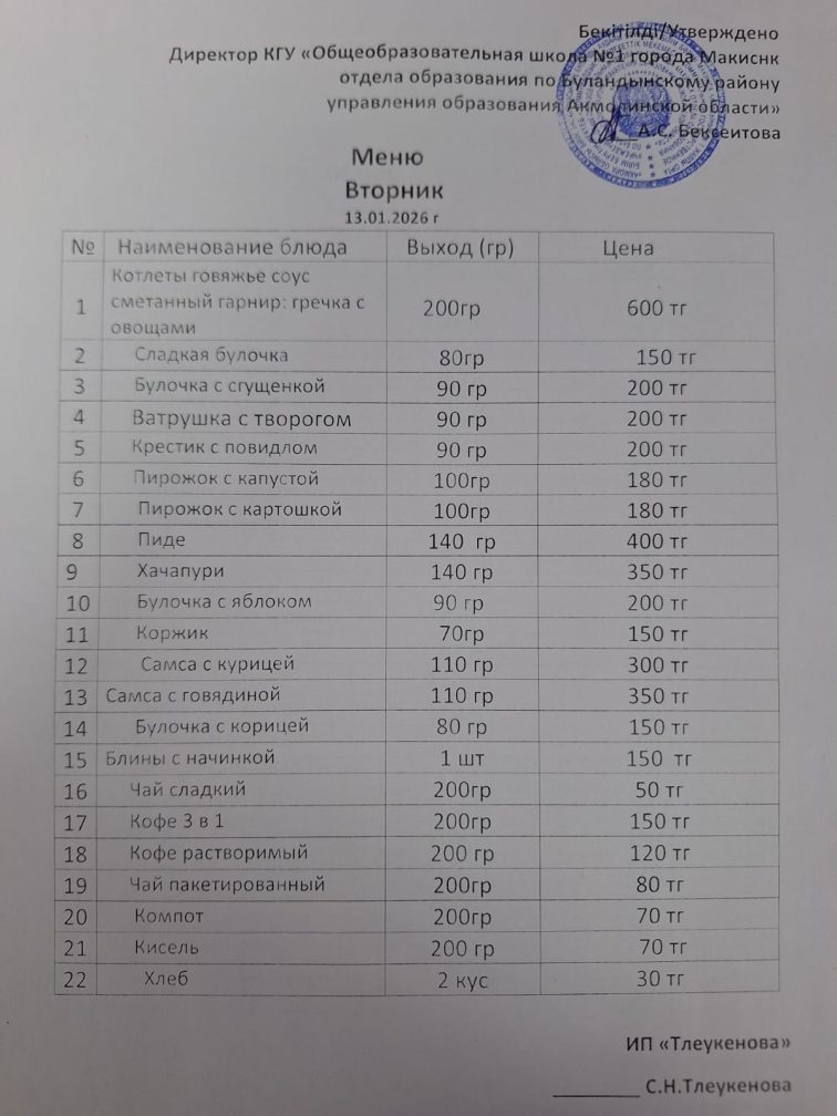Ас мәзірі 13.01.2026